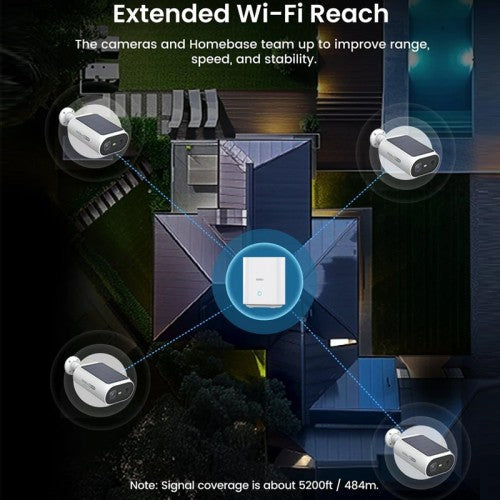 The Homebase offers 32GB of local storage, no monthly fees, and supports WiFi up to 650ft with stable signal. Cloud service is optional.