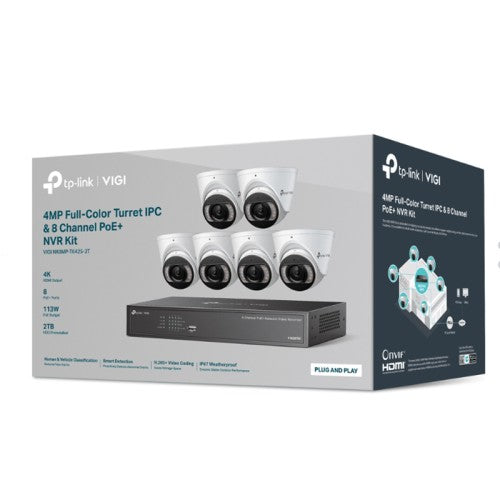 TP-LINK VIGI NK8MP-T6425-2T 6pcs 4MP Full-Color Turret IPC & 8 Channel PoE+ NVR KIT with 2TB HDD installed