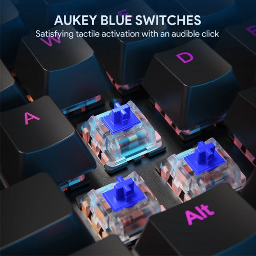 -AUKEY Blue Switches: Characterized by precise tactile feedback & satisfying travel with an audible “click” sound.
