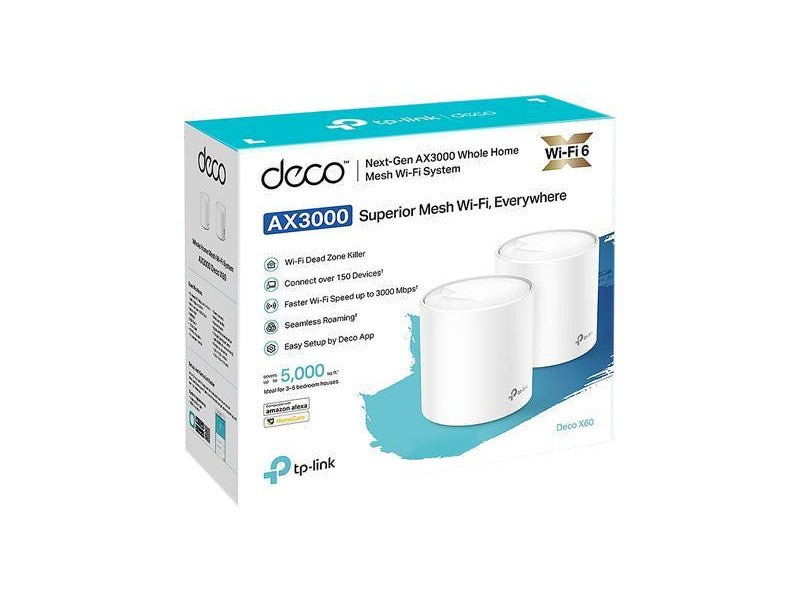 | Features | Router/ Access Point Mode Optional Ethernet Backhaul TP-Link Mesh Technology: - MU-MIMO - OFDMA - 1024-QAM - BSS Color - Auto Path Selection - Self-Healing - AP Steering - Band Steering - Beamforming |