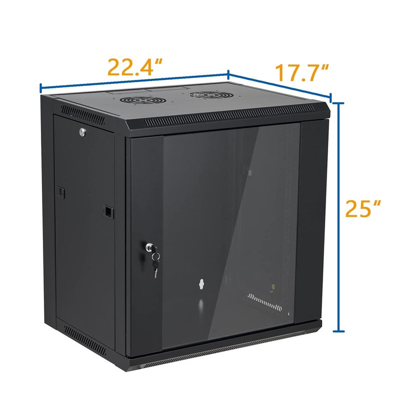 4U 19 Inch Wall Mount Server Cabinet is equipped with a locked glass door to ensure the safety of your data. Also, the server cabinet case fits all standard 19" rack mount devices such as network switches, access points