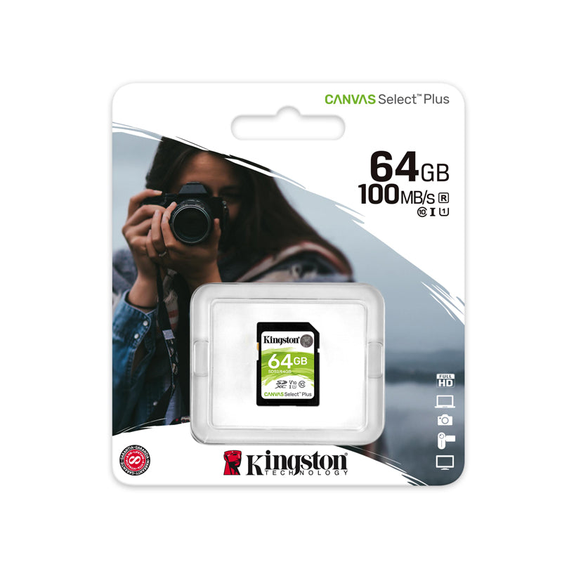 Kingston Canvas Select Plus 64GB UHS-I Class 10 SDXC U1 V10 , Up to 100MB/s Read Flash Card (SDS2/64GBCR)