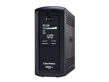 A mini-tower UPS with line interactive topology, the CyberPower Intelligent LCD CP1000AVRLCD provides battery backup (using simulated sine wave output) and surge protection for desktop computers, workstations, networking devices, and home entertainment systems. The CP1000AVRLCD uses Automatic Voltage Regulation (AVR) to correct minor power fluctuations without switching to battery power, which extends battery life. AVR is essential in areas where power fluctuations occur frequently. The CP1000AVRLCD comes with a three-year warranty (including coverage of batteries) and a $350,000 Connected Equipment Guarantee.