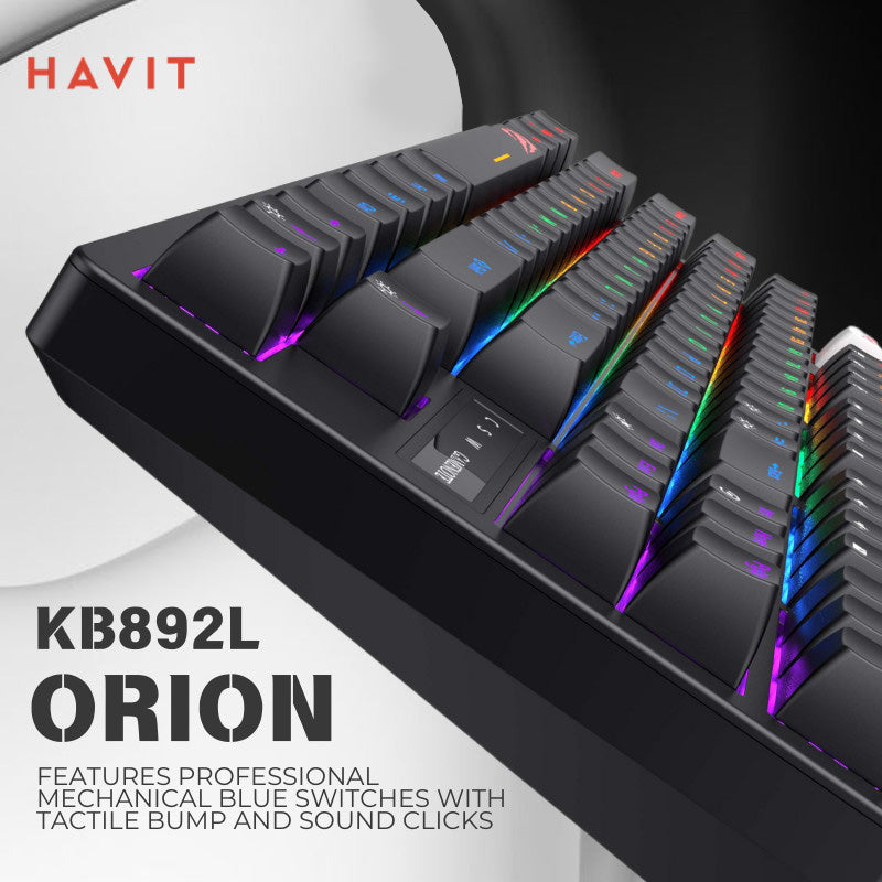 Havit KB892L RGB Wired Mechanical 87-Keys Blue Switch, 19 Lighting Effects Dynamic Backlight Gaming Keyboard